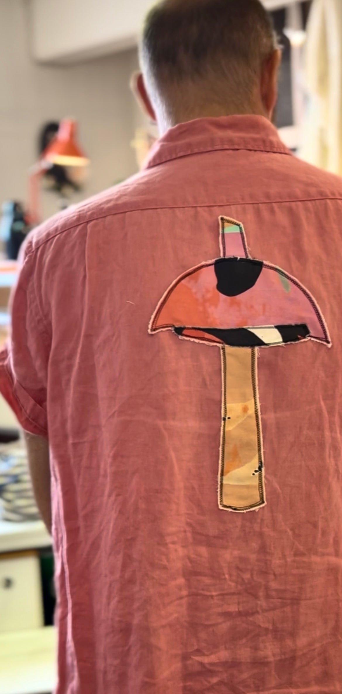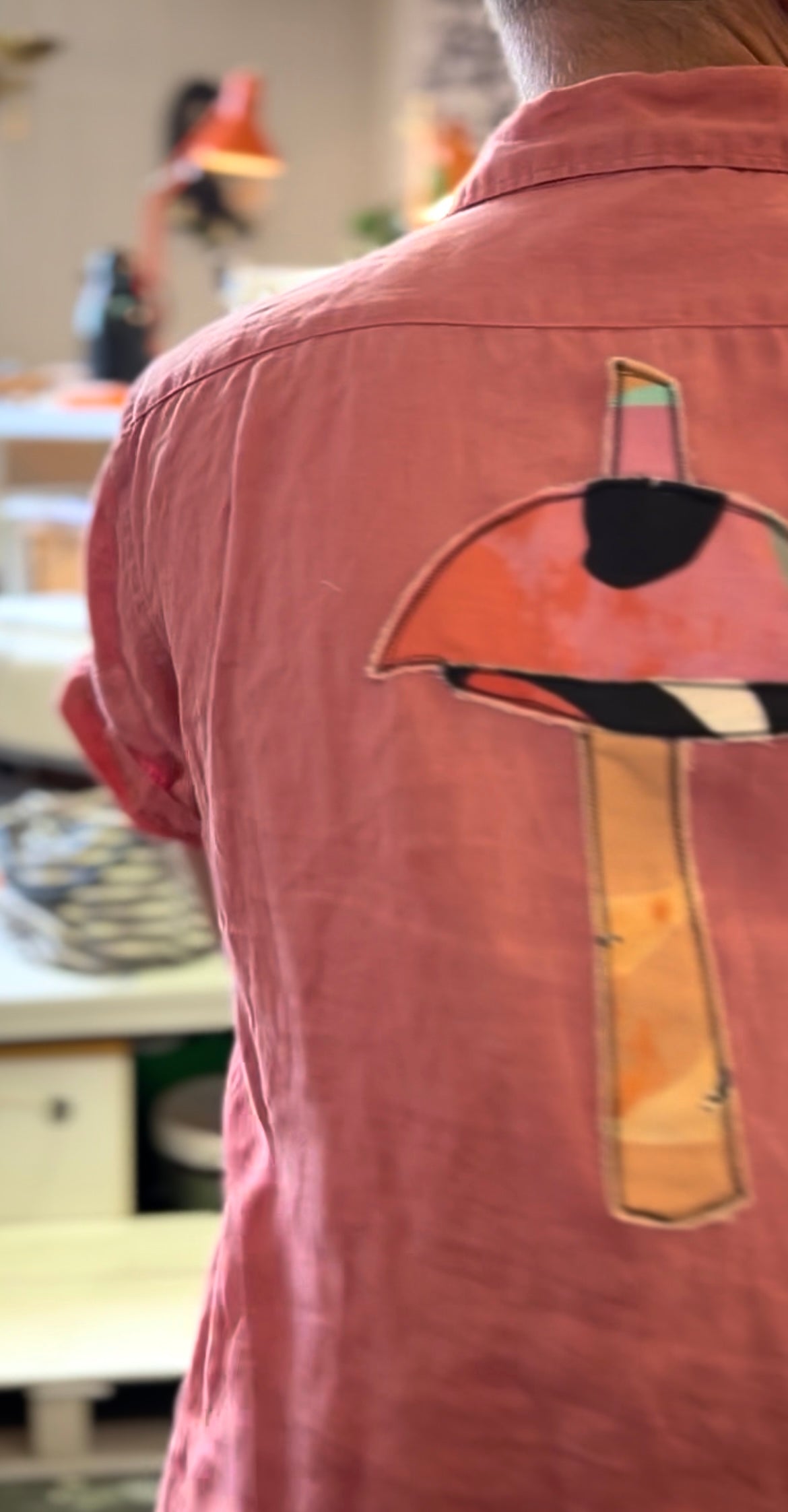 Herrskjorta rosa kortärmad + unikt textlkollage av designspill