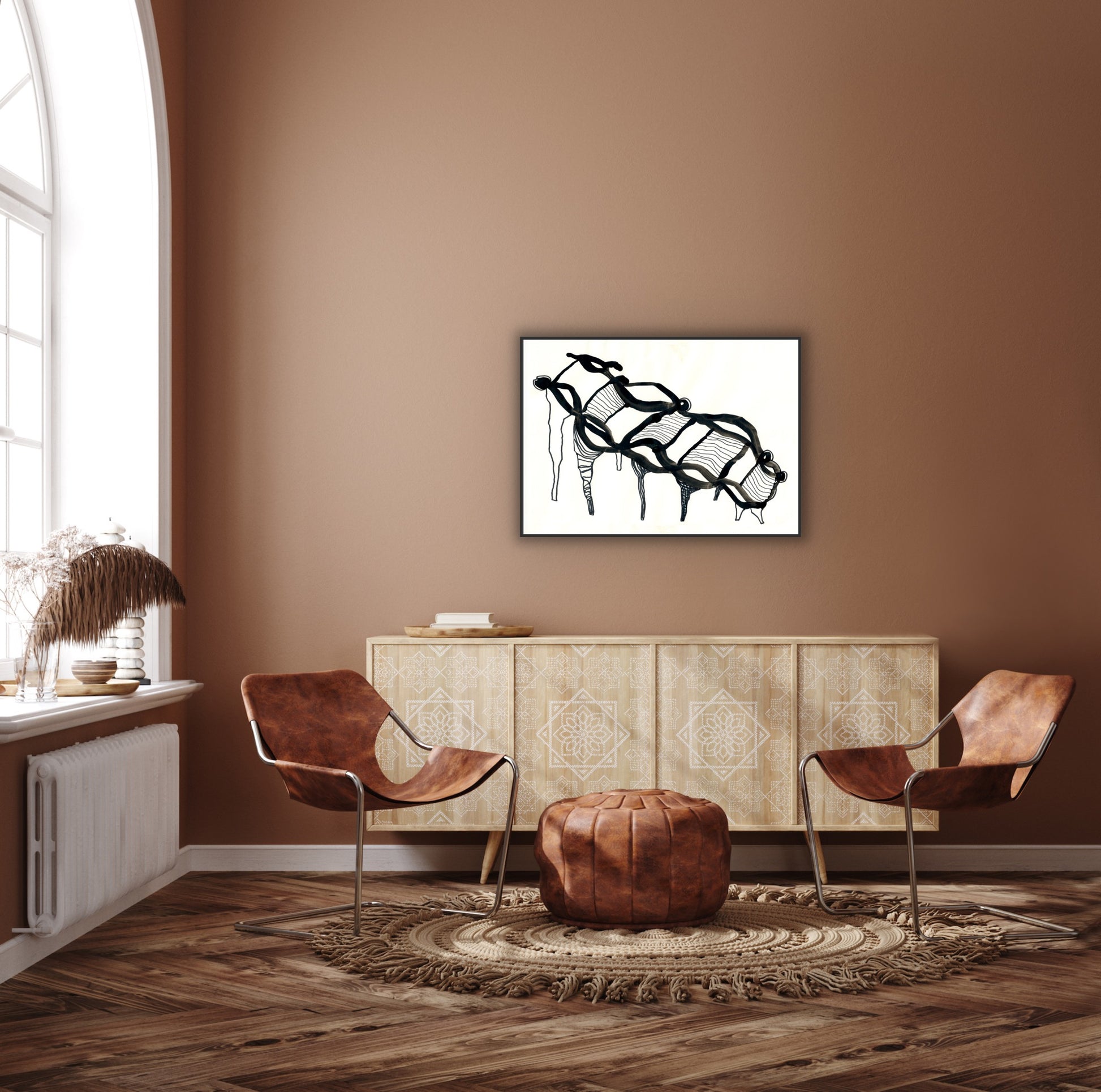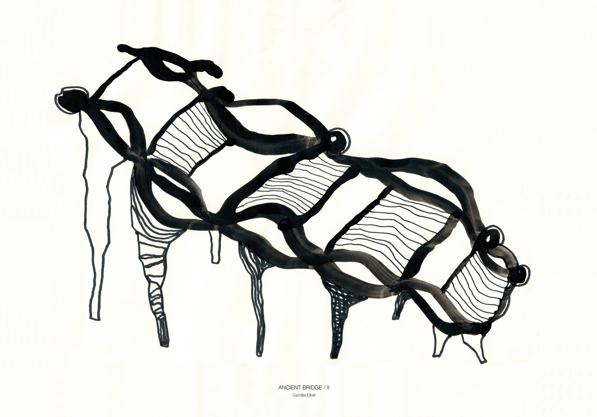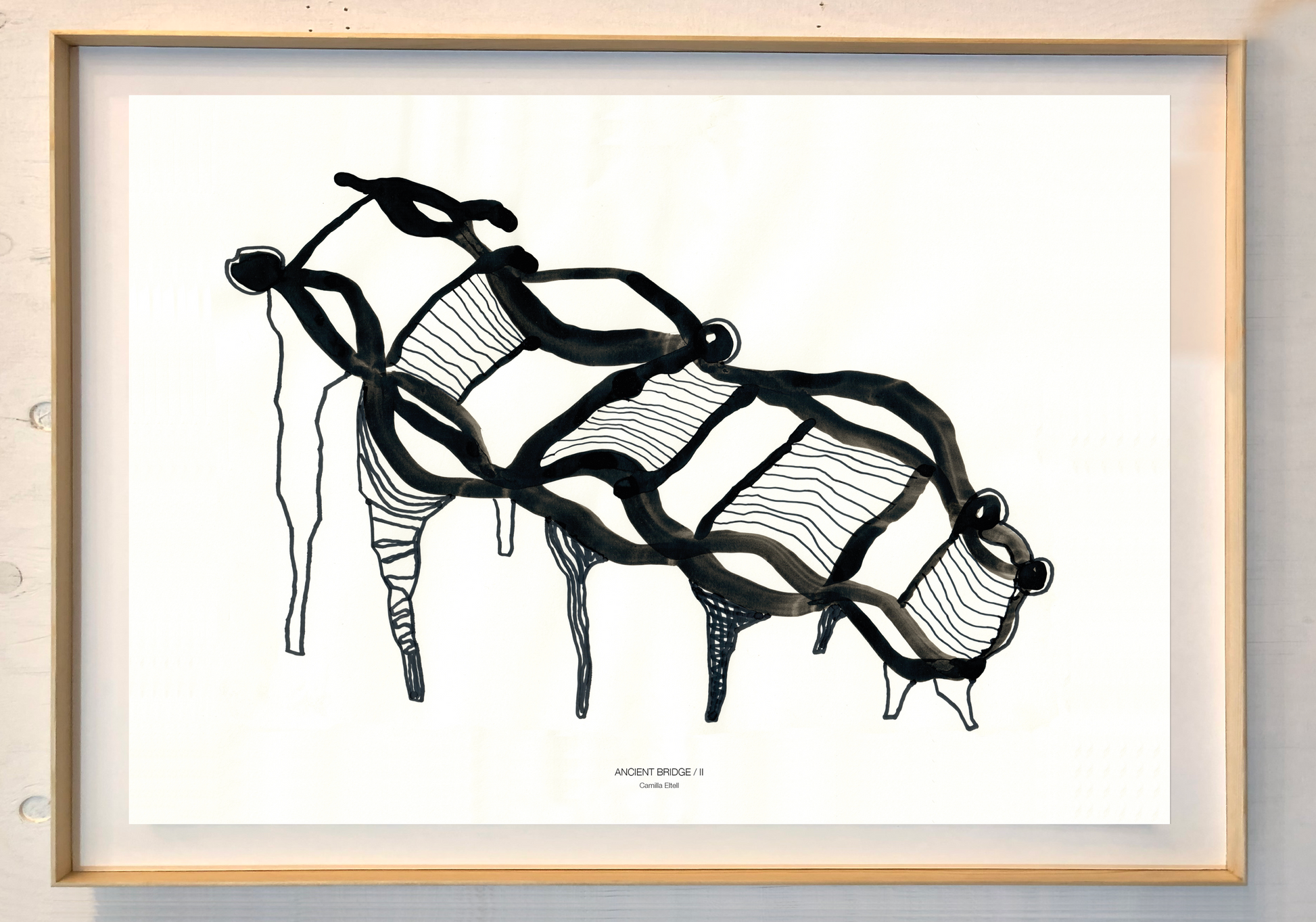 Artprint från tuschoriginal associerat till organiska och uråldriga broar.