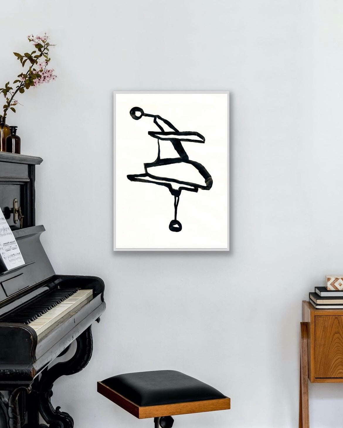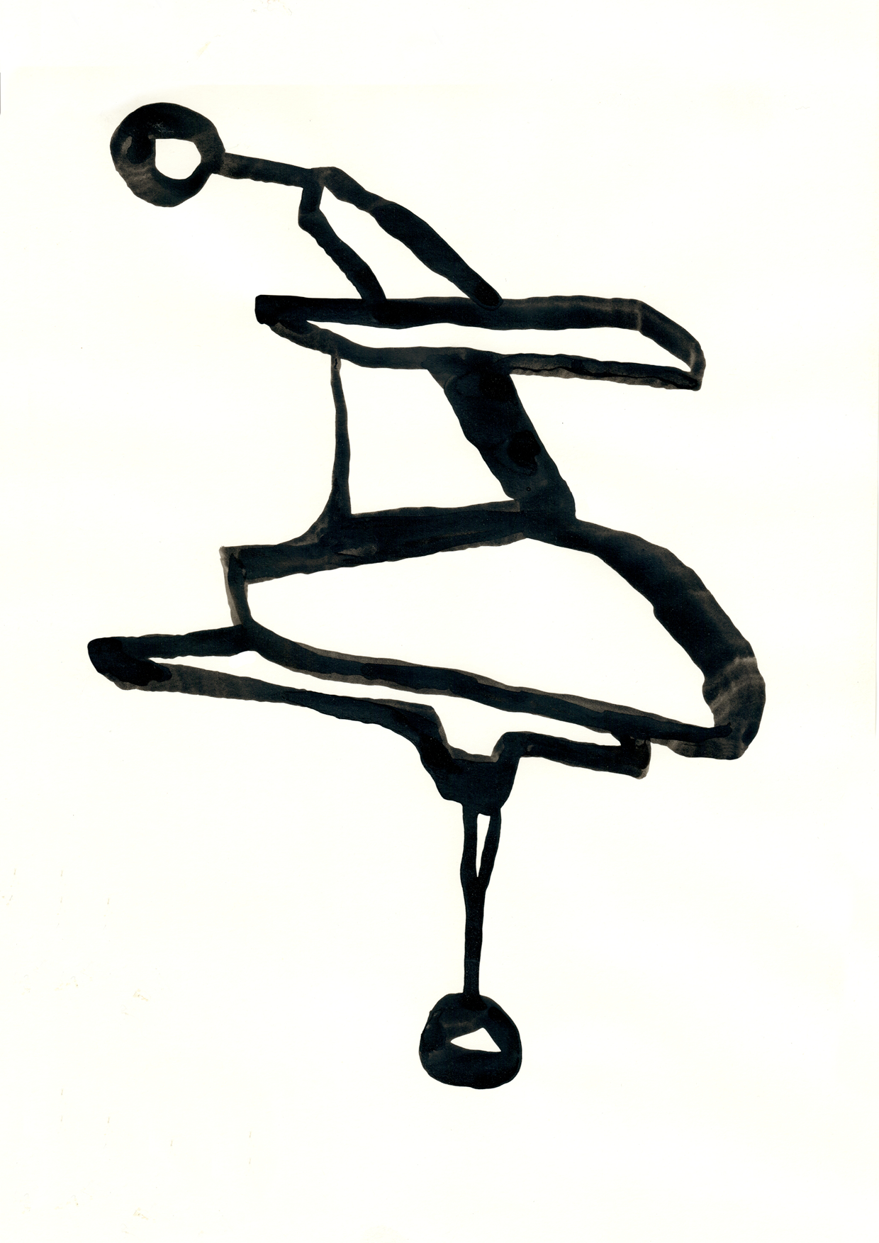 Artprint från tuschoriginal med association till uråldriga verktyg.