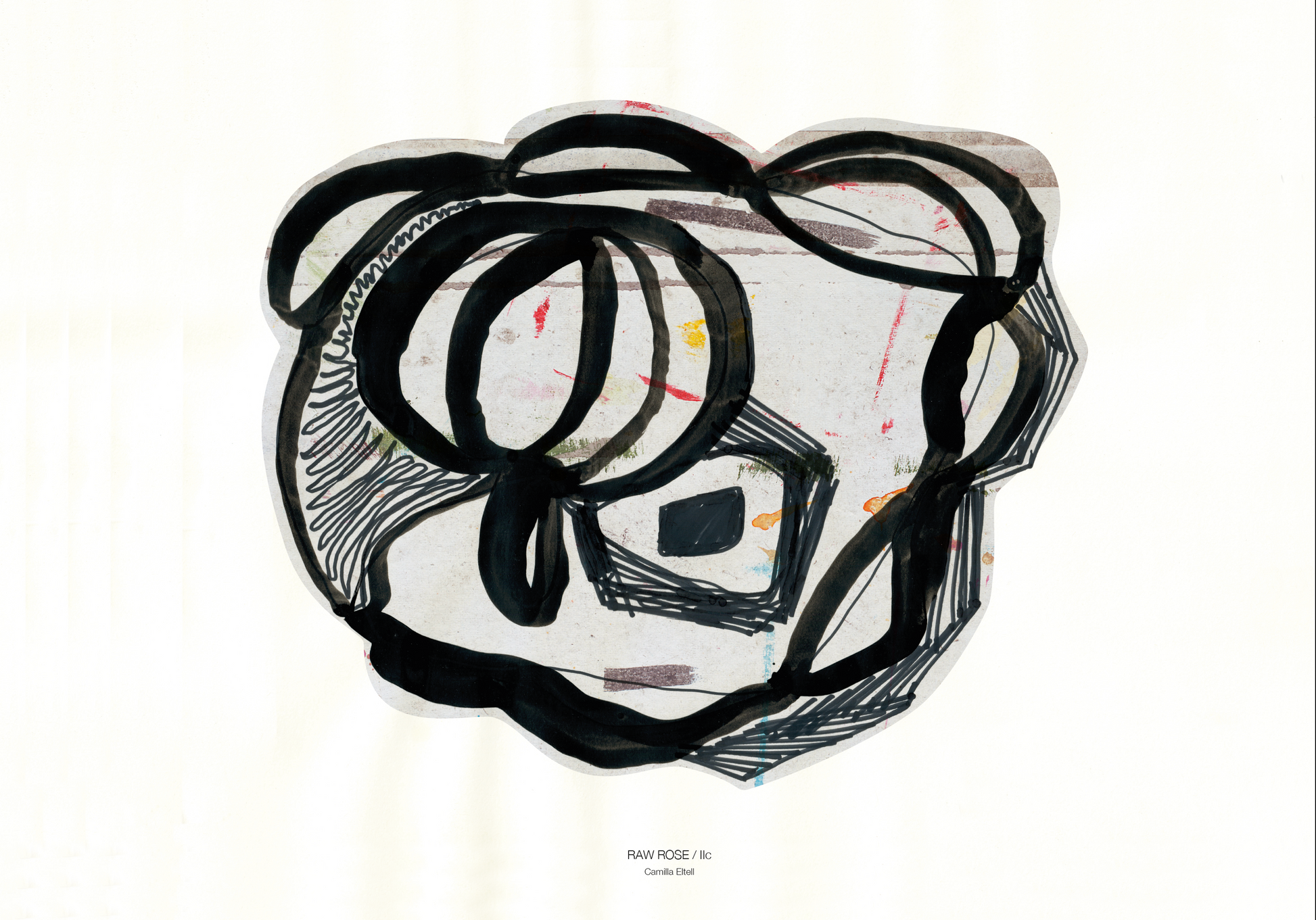 Artprint från tuschoriginal associerat till skulpterade blommor.