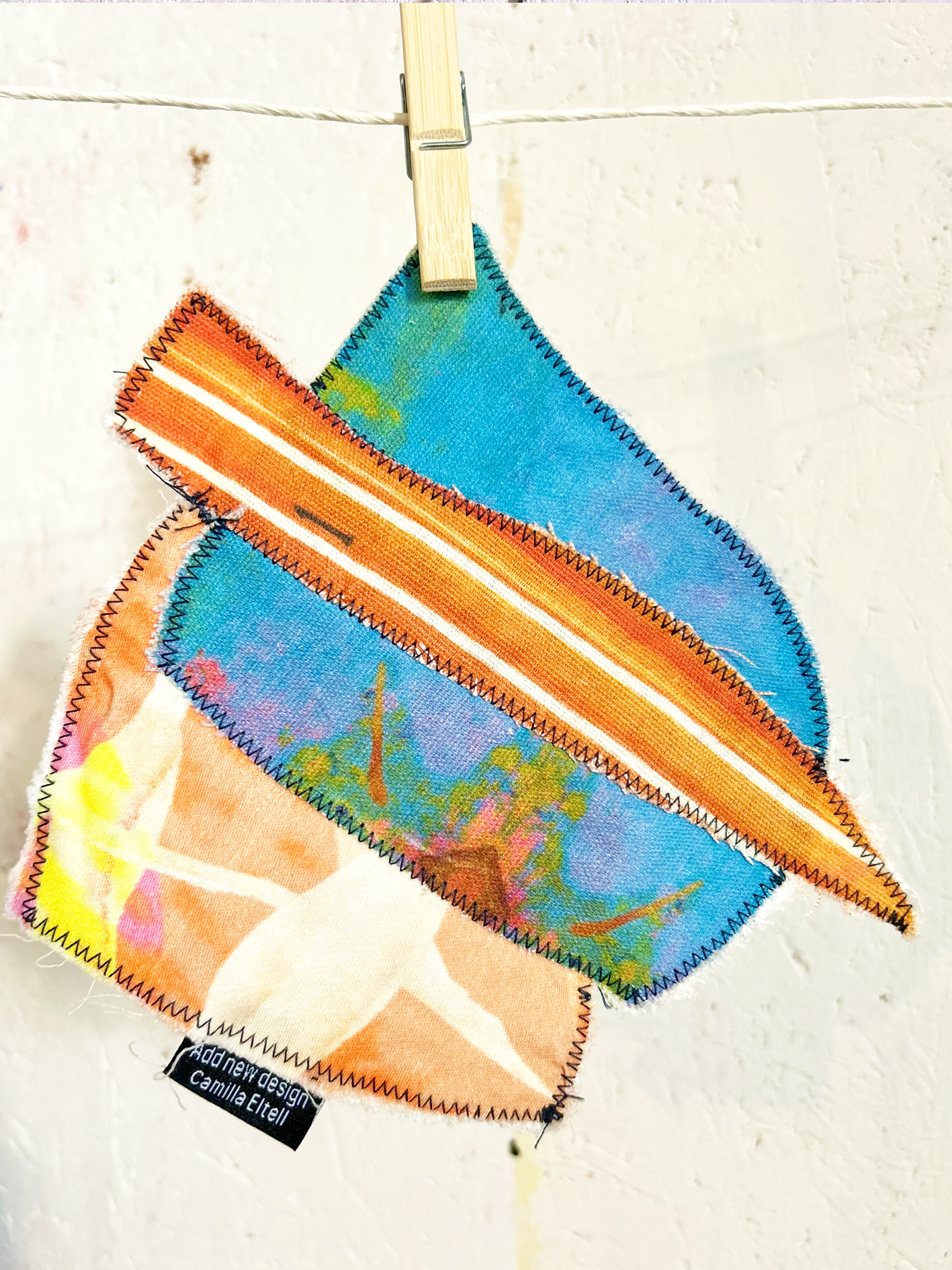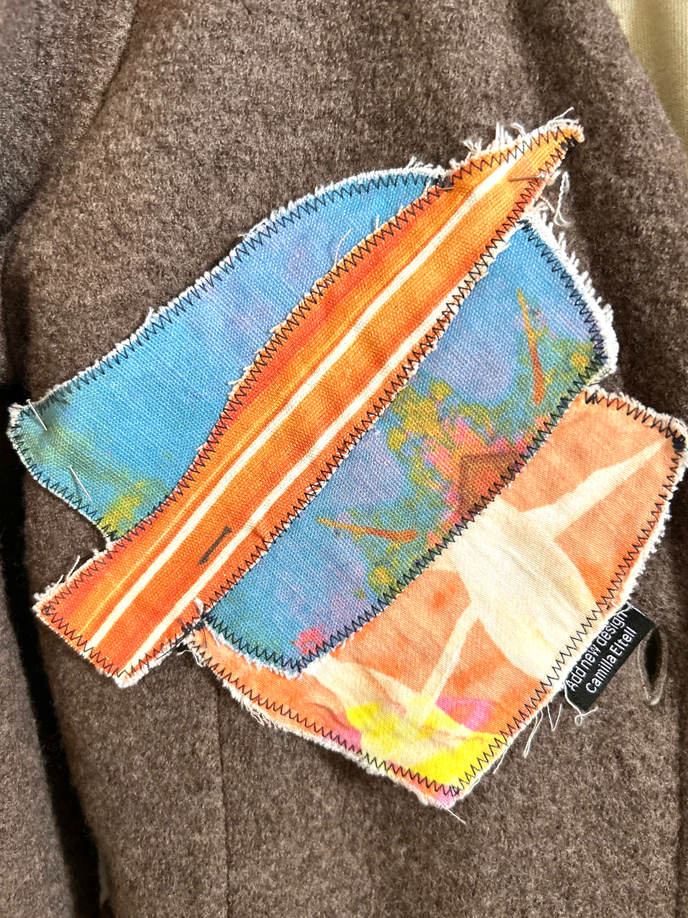 Textilkollagen är unikt formgivna addon i kombination av textilspill i ateljén. Jag gör dem i olika storlekar, färg- och formkombinationer. Allt spill används! Använd för att pimpa ett favortiplagg, täcka en fläck, ett hål eller en reva.