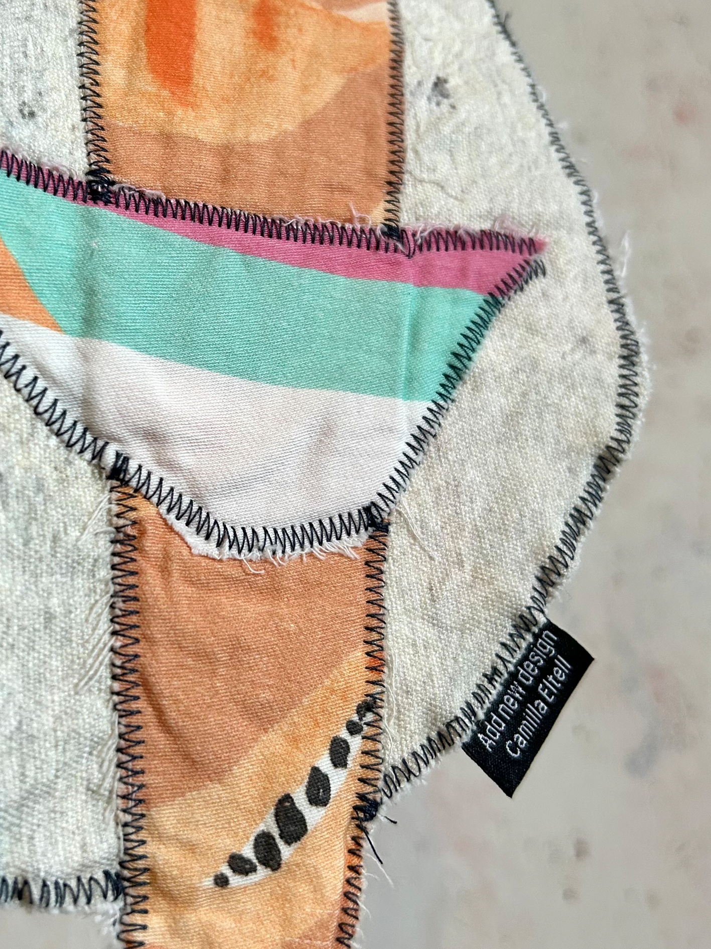 Textilkollagen är unikt formgivna addon i kombination av textilspill i ateljén. Jag gör dem i olika storlekar, färg- och formkombinationer. Allt spill används! Använd för att pimpa ett favortiplagg, täcka en fläck, ett hål eller en reva.